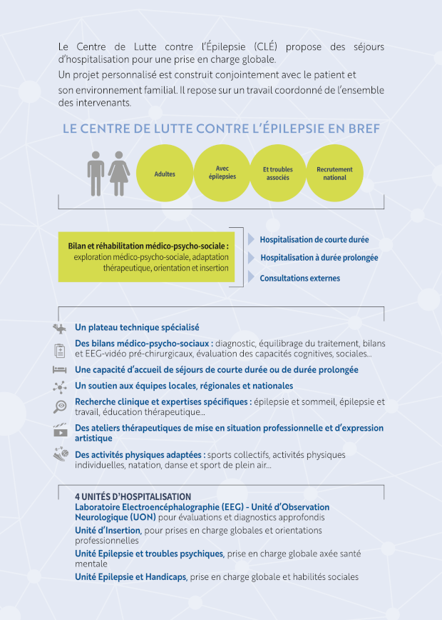 Le Centre de Lutte contre l’Épilepsie (CLÉ) propose des bilans et des accompagnements à dimension de réhabilitations médico-psychosociales.
