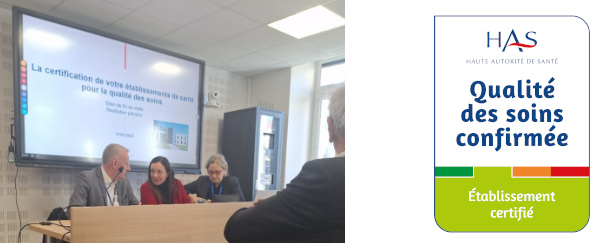 La certification est une procédure d’évaluation externe des établissements de santé publics et privés par des professionnels de santé mandatés par la HAS. Cette visite a lieu tous les 4 ans. Elle permet de valoriser les pratiques professionnelles en faveur des patients et la dynamique d’amélioration continue de la qualité et la sécurité des soins.